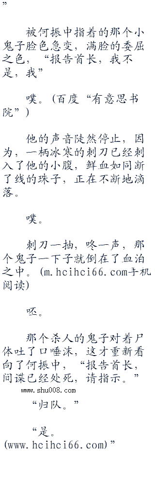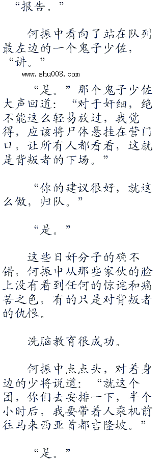 何振中知道,手上沾染了自己人的命,就算这些小鬼子哪天突然清醒了,那么,也永远不可能回到日本了。