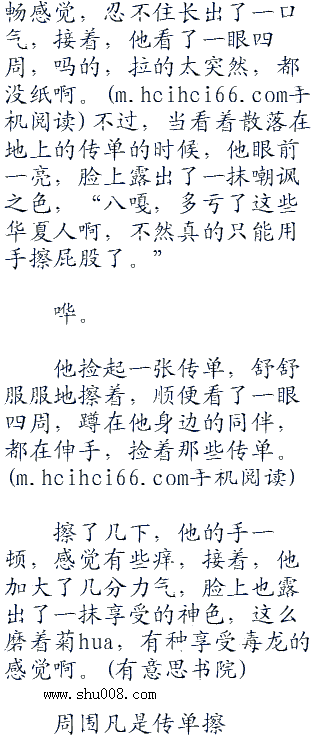 很快,此起彼伏的声音就响了起来,根本来不及去找厕所,周围的鬼子只能跑到一边,躲在废墟之后,一蹲,裤子一拉,就开始释放起来。