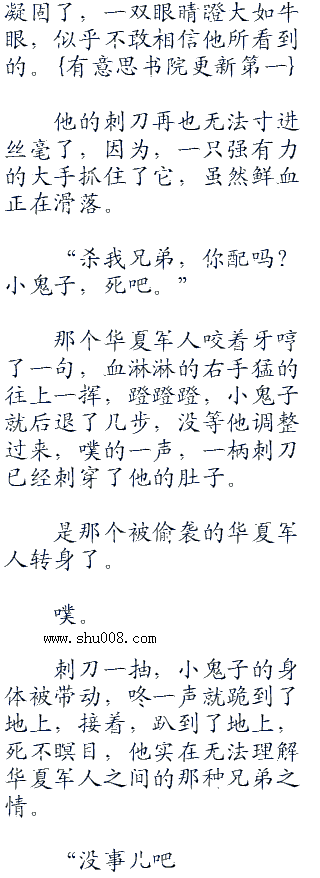 没有人害怕,没有人胆怯,百年前,华夏人被称之为东亚病夫,受尽屈辱,今天,他们要用拼刺刀的方式来告诉这些鬼子,现在的华夏人,有勇气,有血性。