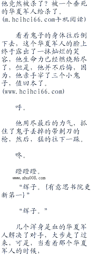 那个小鬼子的脸上露出了笑容,不管怎么样,这个该死的华夏人终究还是死定了啊。。w ..co m