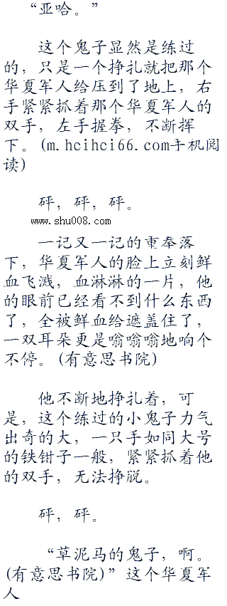 一个小鬼子双手端着刺刀,脸上的表情狰狞到了极点,吃奶地劲儿地都用了出来,殷红的鲜血正从他对面的一个华夏军人的肚子不断流落。