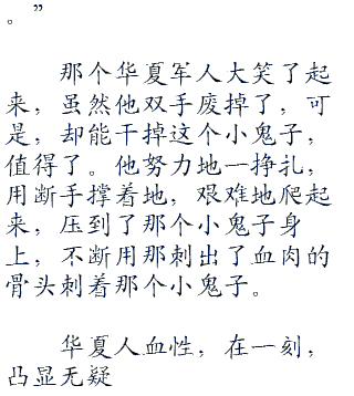 华夏军人的脸上露出了一抹轻蔑之色,仿佛一点儿也没在意他的生命即将走到尽头,他抬手了,用尽最后的力气,一挥。