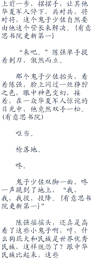 “该死的懦夫,你不配当大日本帝国的勇士。”鬼子少佐大喝了一声,伸手一推,噗的一声,锋利的刺刀就没入了那个跪地的鬼子背心。
