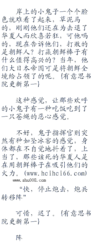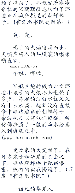 朝鲜棒子惊恐地叫声戛然而止,一枚炮弹落到了冲锋舟上,轰的一声,一团火焰将那里笼罩,就像是一个西瓜突然炸开一般,血肉朝着四周不断冲击而出。