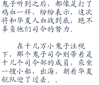 大战即将来临,这片最前线的阵地上到处都弥漫着紧张,不安,激动的气氛,紧张不安是那些老兵,只有他们才深知即将来临的战争的可怕,激动和兴奋是那些新入伍的鬼子,在军国主营思想的洗脑下,他们渴望着和华夏交战,并且击败华夏人。