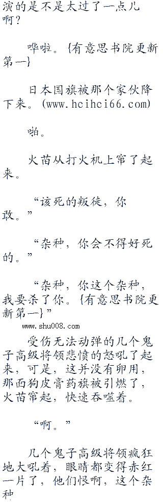 岸上的鬼子一个个看的是目眦欲裂,脸上布满了感动之色,一些感情丰富的家伙更是已经流下了泪水,为了他们,为了大日本帝国,竟然真的开枪了,上演了一出血淋淋的苦肉计。