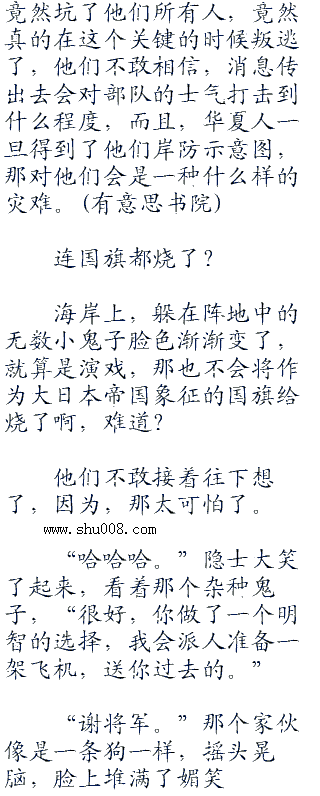那些小鬼子疯狂地大吼着,他们恨啊,为了他们,为了争取时间,那些大日本帝国的将领都付出了这样血的代价,他们还有什么理由退缩,有什么理由不奋勇杀敌呢?