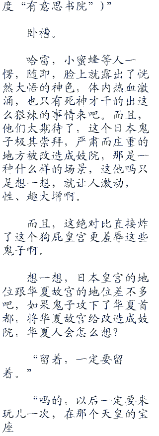 甚至,一些鬼子兵都受不了,看着那些被当街强奸,**的漂亮女人,他们受到的刺激可不小啊,再加上,他们本来就是淫荡的民族,受不了这样的刺激。
