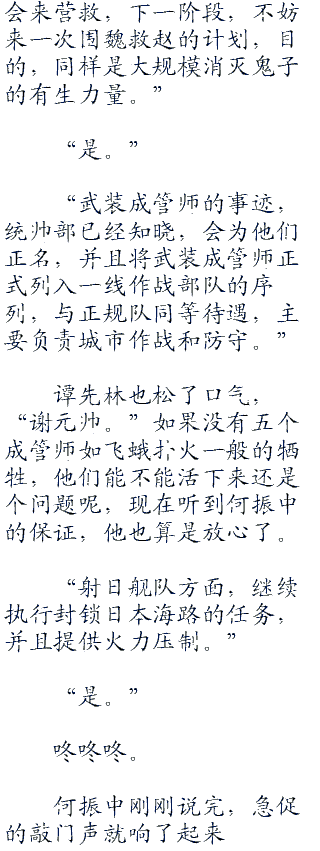“元帅这是哪儿的话,能够带兵打鬼子,累死也愿意啊。”