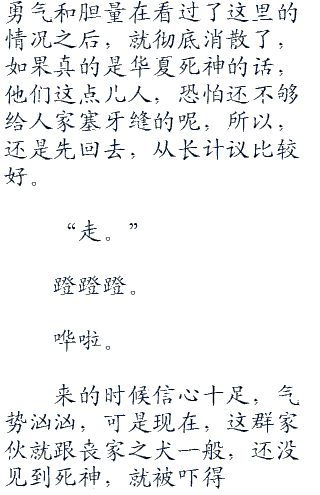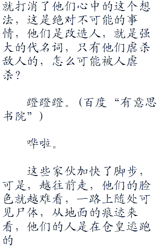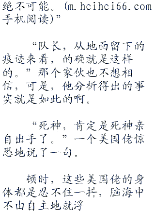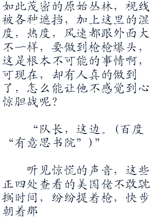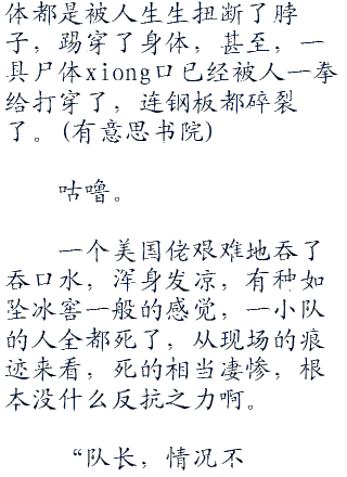一个家伙刚说什么,可是,话就开始抖起来了,因为他又看见了前面了有几具无头的尸体,身上都穿着他们美军的军服,是他们的人。