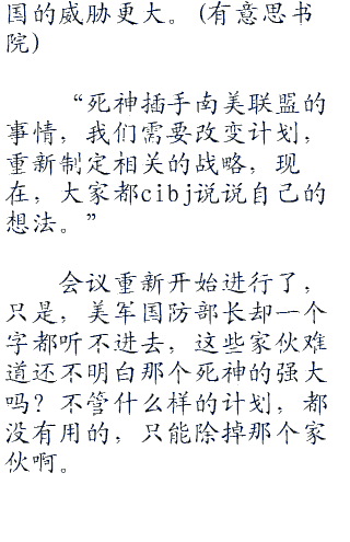 美国国防部长环视了一眼奥巴马等人,这才说道:“死神如果呆在华夏,我们可能真的没有办法,可是,现在他非要找死,来了南美洲,那么,这就是我们的机会。)”