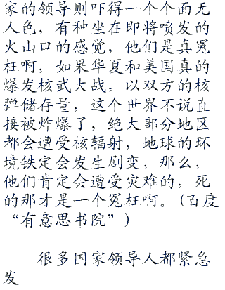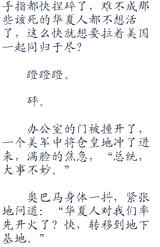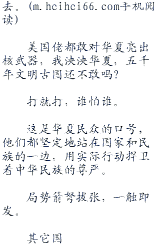 “还有,别那么多废话,要打就打,要动用核武器就用,有什么招子尽管来,我华夏全都接着。”
