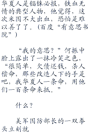 “我华夏派驻巴西的十五名高级军事顾问,遭受暗杀,另有三十二名外交联络人员生死不明,连尸体都没找到。”何振中的声音中充满了冰冷的杀机,缓缓说道:“另外,在古巴,委内瑞拉等国,我华夏的外交人员均出现了光天化日之下被人暗杀的情形,我想,总统先生,你们应该知道是怎么回事吧。”