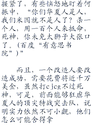 马八奥的脸色也很难看,说到这个,他的心里更是恼怒,这么多年多,投入了海量的科研经费,以为改造人成功之后,将会是他们的一大杀手锏,可是,他做梦都没想到,那些他们寄予厚望的改造人,在死神面前竟然能不堪一击,整整一个小队被全灭,他能不气吗?