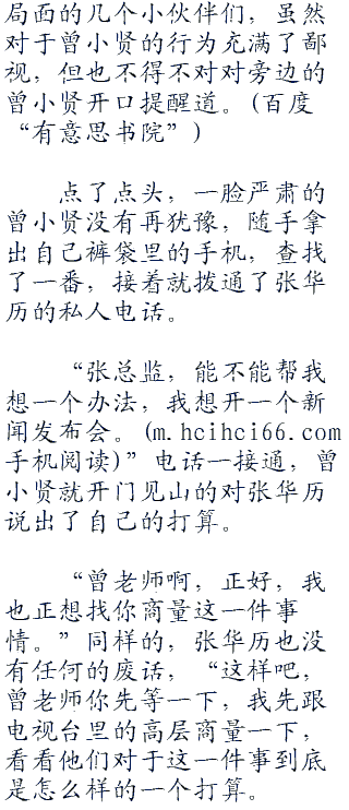 “张总监,能不能帮我想一个办法,我想开一个新闻发布会。”电话一接通,曾小贤就开门见山的对张华历说出了自己的打算。