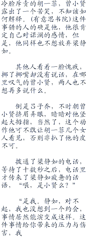“是我。静如,对不起,我也没想到一个约会,事情居然能演变成这样。这件事情给你带来的压力与伤害,我向你道歉。”