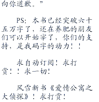 PS:本书已经突破六十五万字了,还在养肥的朋友们可以开始宰了,你们的支持,是我码字的动力!!
