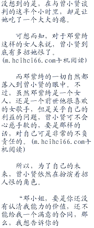 没想到的是,在与曾小贤谈判的这半个小时里,却是让她吃了一个大大的瘪。