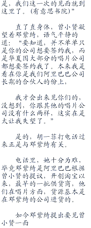 电话里,她十分为难,毕竟邓紫绮是阿里巴巴根据曾小贤的提议,开创淘宝以来,最早的一批供货商,他们在唱片方面,货源基本是在邓紫绮的公司进货的。
