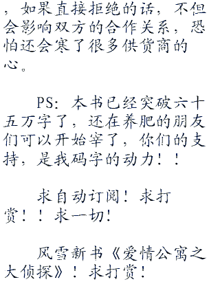 PS:本书已经突破六十五万字了,还在养肥的朋友们可以开始宰了,你们的支持,是我码字的动力!!