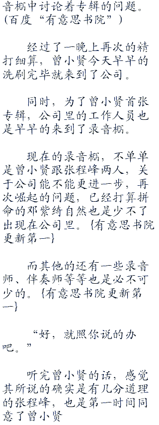 此时,对话的两人,正是曾小贤跟张程峰。而他们两人此时此刻,正在公司的录音棚中讨论着专辑的问题。