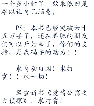 PS:本书已经突破六十五万字了,还在养肥的朋友们可以开始宰了,你们的支持,是我码字的动力!!