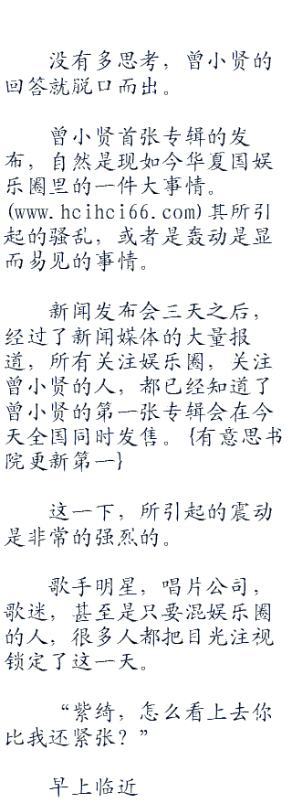 曾小贤首张专辑的发布,自然是现如今华夏国娱乐圈里的一件大事情。其所引起的骚乱,或者是轰动是显而易见的事情。