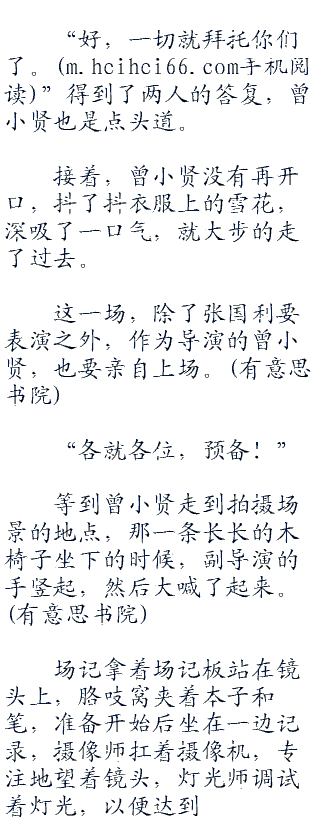 等到曾小贤走到拍摄场景的地点,那一条长长的木椅子坐下的时候,副导演的手竖起,然后大喊了起来。