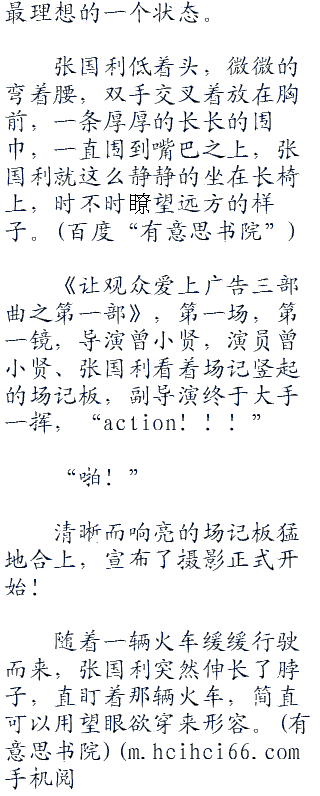 张国利低着头,微微的弯着腰,双手交叉着放在胸前,一条厚厚的长长的围巾,一直围到嘴巴之上,张国利就这么静静的坐在长椅上,时不时瞭望远方的样子。