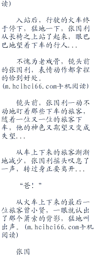随着一辆火车缓缓行驶而来,张国利突然伸长了脖子,直盯着那辆火车,简直可以用望眼欲穿来形容。