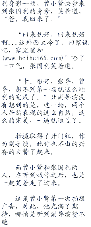 今天,要拍摄的画面,是这一个代言广告的开头。而所用到的演员,除了曾小贤之外,剩下的也只是集演员和导演于一身的张国利了。