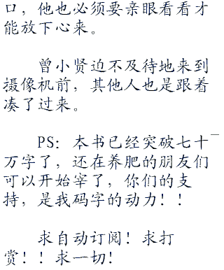 “今晚就靠你们两个了。”转头对着其身边一名副导演和摄像师,正在摄影机前的两人,曾小贤语气说不出的郑重。