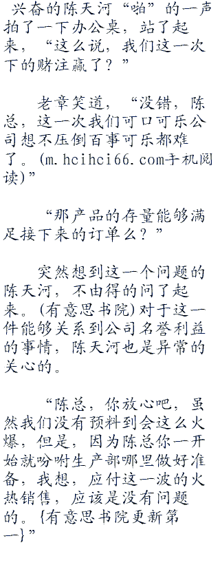 兴奋的陈天河“啪”的一声拍了一下办公桌,站了起来,“这么说,我们这一次下的赌注赢了?”