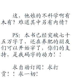 PS:本书已经突破七十五万字了,还在养肥的朋友们可以开始宰了,你们的支持,是我码字的动力!!