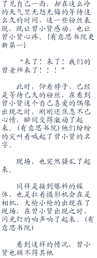 自然的,小林的话,靠近曾小贤的粉丝,也是一字不漏的听到了。