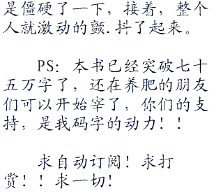 PS:本书已经突破七十五万字了,还在养肥的朋友们可以开始宰了,你们的支持,是我码字的动力!!