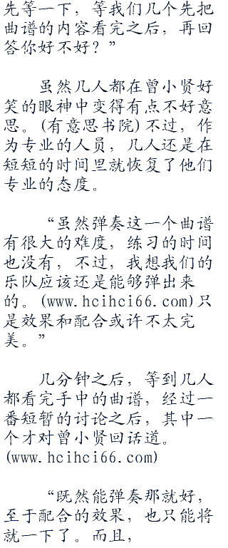 “这个我们现在也不敢说,这样吧,曾老师你先等一下,等我们几个先把曲谱的内容看完之后,再回答你好不好?”