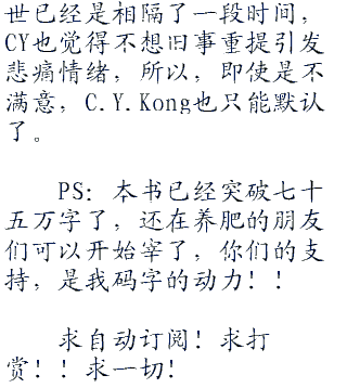PS:本书已经突破七十五万字了,还在养肥的朋友们可以开始宰了,你们的支持,是我码字的动力!!