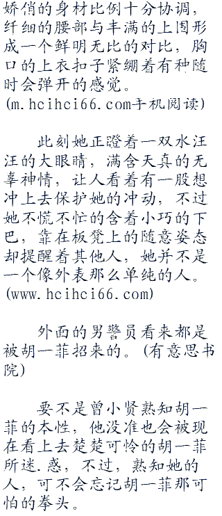 此刻她正瞪着一双水汪汪的大眼睛,满含天真的无辜神情,让人看着有一股想冲上去保护她的冲动,不过她不慌不忙的含着小巧的下巴,靠在板凳上的随意姿态却提醒着其他人,她并不是一个像外表那么单纯的人。