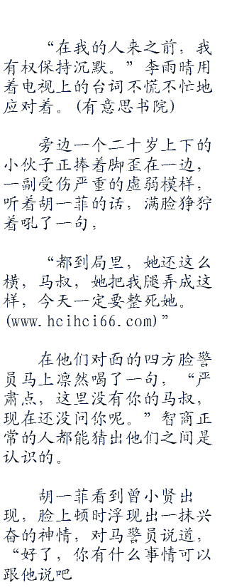 曾小贤收起了轻松的心情,可能是因为职业原因吧,对于警局这种政府机构他心里一直有种莫名的反感。