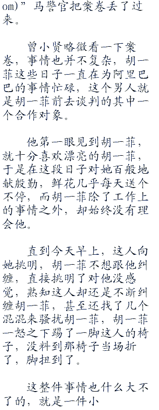 曾小贤略微看一下案卷,事情也并不复杂,胡一菲这些日子一直在为阿里巴巴的事情忙碌,这个男人就是胡一菲前去谈判的其中一个合作对象。