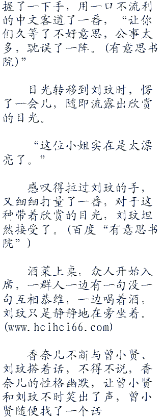 “在见刘小姐之前,我曾经说过天华的那位模特是我见过最美丽的东方人,但是今天我恐怕要改口了。”