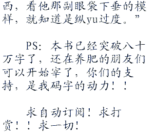 PS:本书已经突破八十万字了,还在养肥的朋友们可以开始宰了,你们的支持,是我码字的动力!!