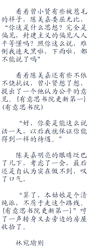 陈美嘉明亮的眼睛眨巴了几下,考虑了一会,最后还是自认为实在做不到,叹了口气,