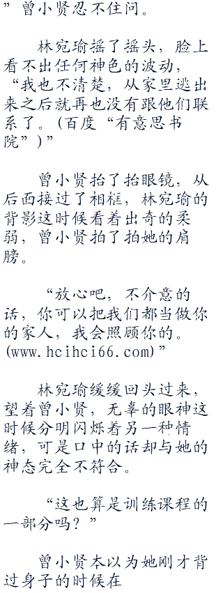 曾小贤本以为她刚才背过身子的时候在偷偷流泪了,没想到她还这么冷静,暗叹自己多事了,也没有多说什么,只是点了点头。