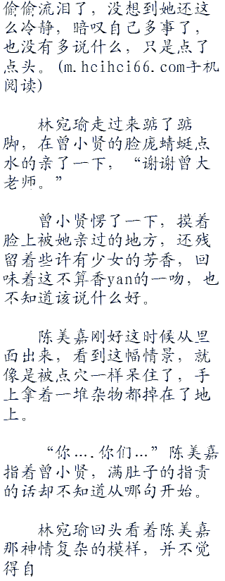 曾小贤愣了一下,摸着脸上被她亲过的地方,还残留着些许有少女的芳香,回味着这不算香yan的一吻,也不知道该说什么好。