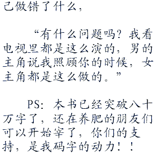 “有什么问题吗?我看电视里都是这么演的,男的主角说我照顾你的时候,女主角都是这么做的。”