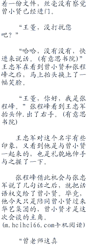 中国影视界的重量级人物之一的王忠军正在聚精会神的看着一份文件,丝毫没有察觉曾小贤已经进门。
