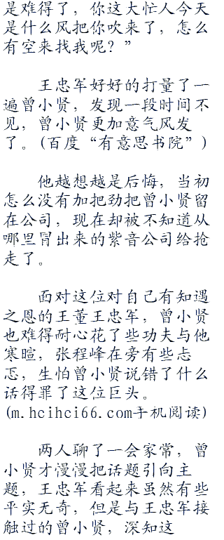 两人聊了一会家常,曾小贤才慢慢把话题引向主题,王忠军看起来虽然有些平实无奇,但是与王忠军接触过的曾小贤,深知这种类型人往往对自己的判断极有主见的人,任何的拐弯抹角的花招反而会起到反作用。