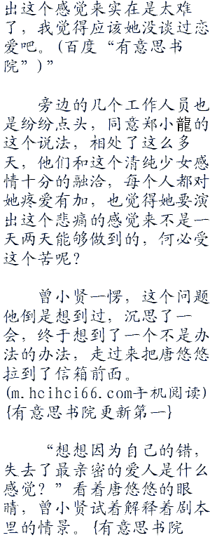 “想想因为自己的错,失去了最亲密的爱人是什么感觉?”看着唐悠悠的眼睛,曾小贤试着解释着剧本里的情景。
